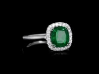 Discover our elegant cushion-cut natural emerald ring, a timeless blend of beauty and sophistication. At its center, a captivating 1.72-carat cushion-cut emerald radiates natural allure. Surrounding the emerald is a halo of high-color, high-clarity round-cut diamonds, amplifying its brilliance. Crafted in 18K white gold and weighing 4.23 grams, this exquisite piece boasts a total of 1.92 carats, making it a stunning symbol of elegance and refinement.